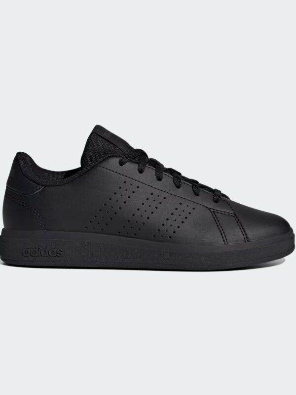 Sleek and versatile all-black Adidas Advantage CF Kids Shoes, featuring dual hook-and-loop straps and perforated details.