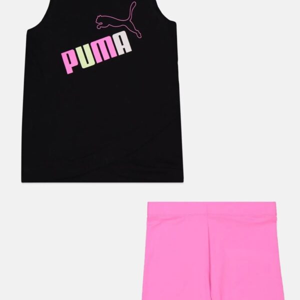 Puma Girls' Black Tank Top & Pink Cycling Shorts Set-puma PGS22-03575 SET