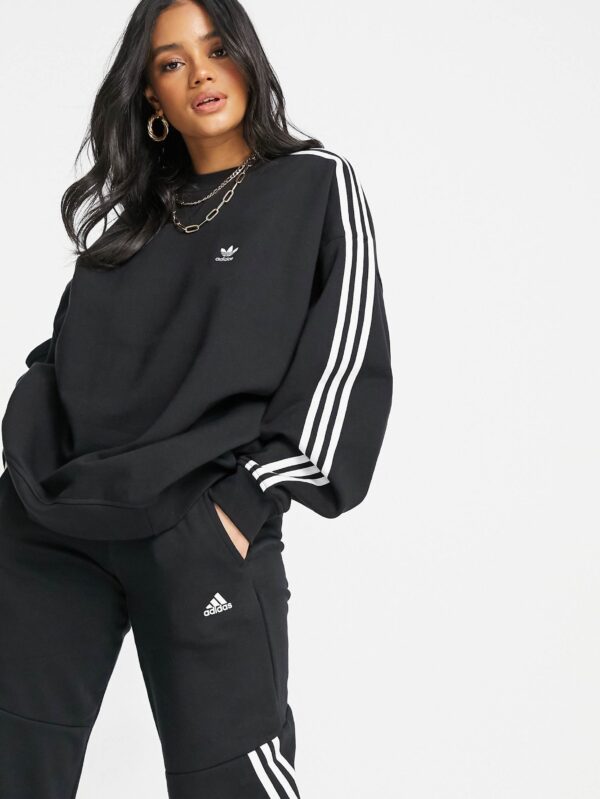Adidas Women's Adicolor Classics Crop Sweatshirt in black, a stylish and comfortable cropped sweatshirt with three stripes detailing. Adidas HF7530