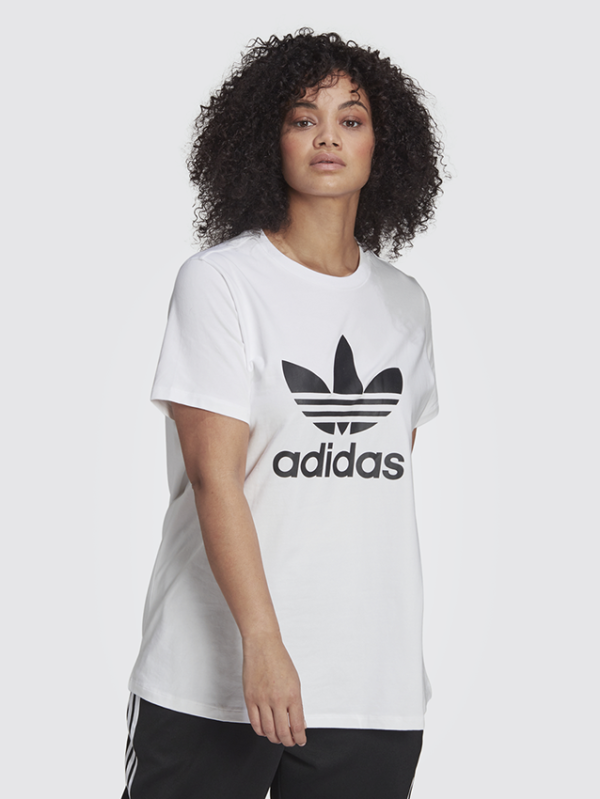 Adidas HD7110: Adidas plus size black t-shirt with a relaxed fit, soft cotton fabric, and a clean Trefoil logo, perfect for casual and everyday wear.