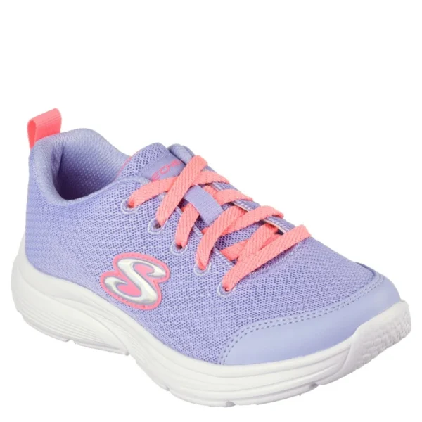 Skechers Girls' Glimmer Kicks - Starlet Shimmer sneaker in lavender with coral accents and glitter detail
