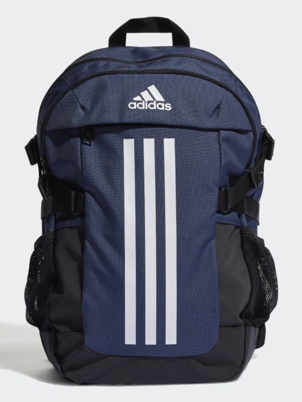 White Adidas Grand Court 2.0 K shoes with navy blue stripes and a convenient hook-and-loop closure. Adidas JI0973