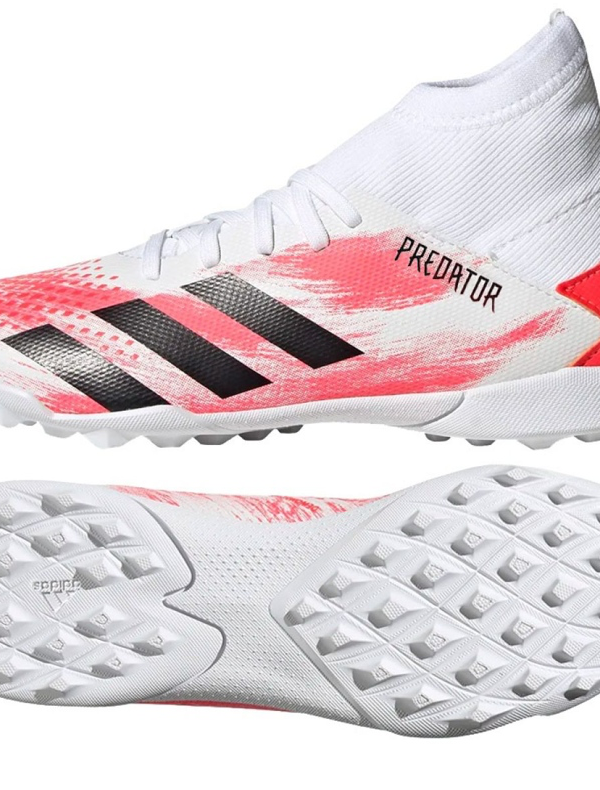 White Adidas Predator 20.3 junior turf football boots for enhanced control and style on the pitch. Adidas EG0929
