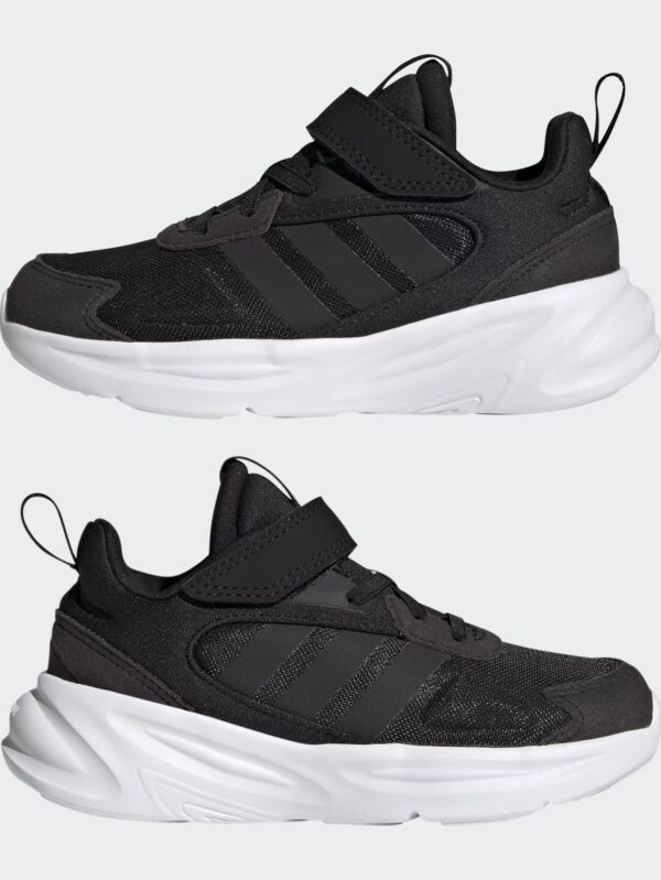 Comfortable and supportive Adidas Ozelle Kids El Running Shoes in black and white, featuring a hook-and-loop strap for easy wear. Adidas GW1560