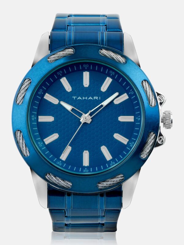 Tahari Men's Blue Honeycomb Dial Watch with Industrial Bezel-TAH60047BU