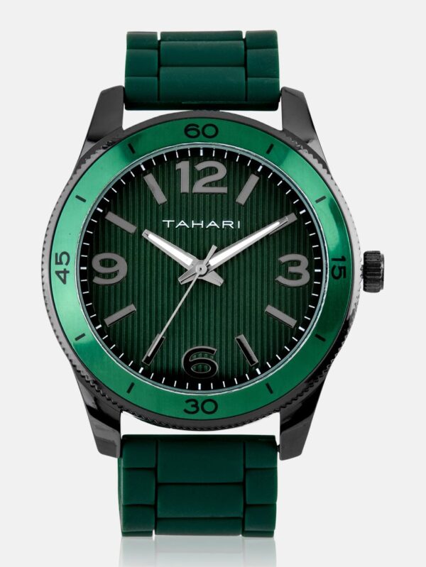 Tahari Men's Deep Green Sport Watch with Black Case and Silicone Band-TaH60023BU
