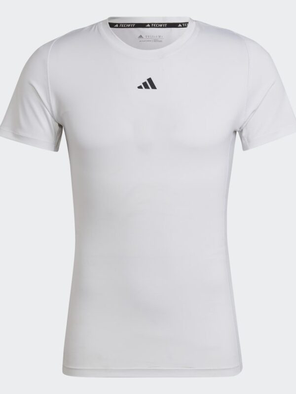 White Adidas Techfit training tee with a close, supportive fit for enhanced performance.Adidas HK2335