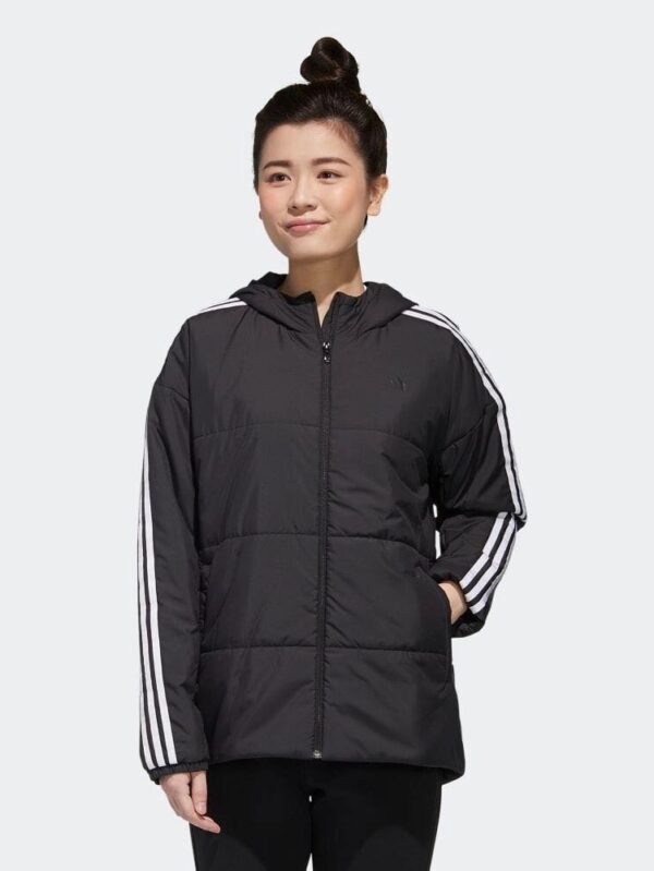 The Adidas Essentials Midweight Down Jacket provides superior warmth and comfort with premium down insulation and a water-repellent finish. It features a full-zip closure, hood, and iconic Adidas branding.