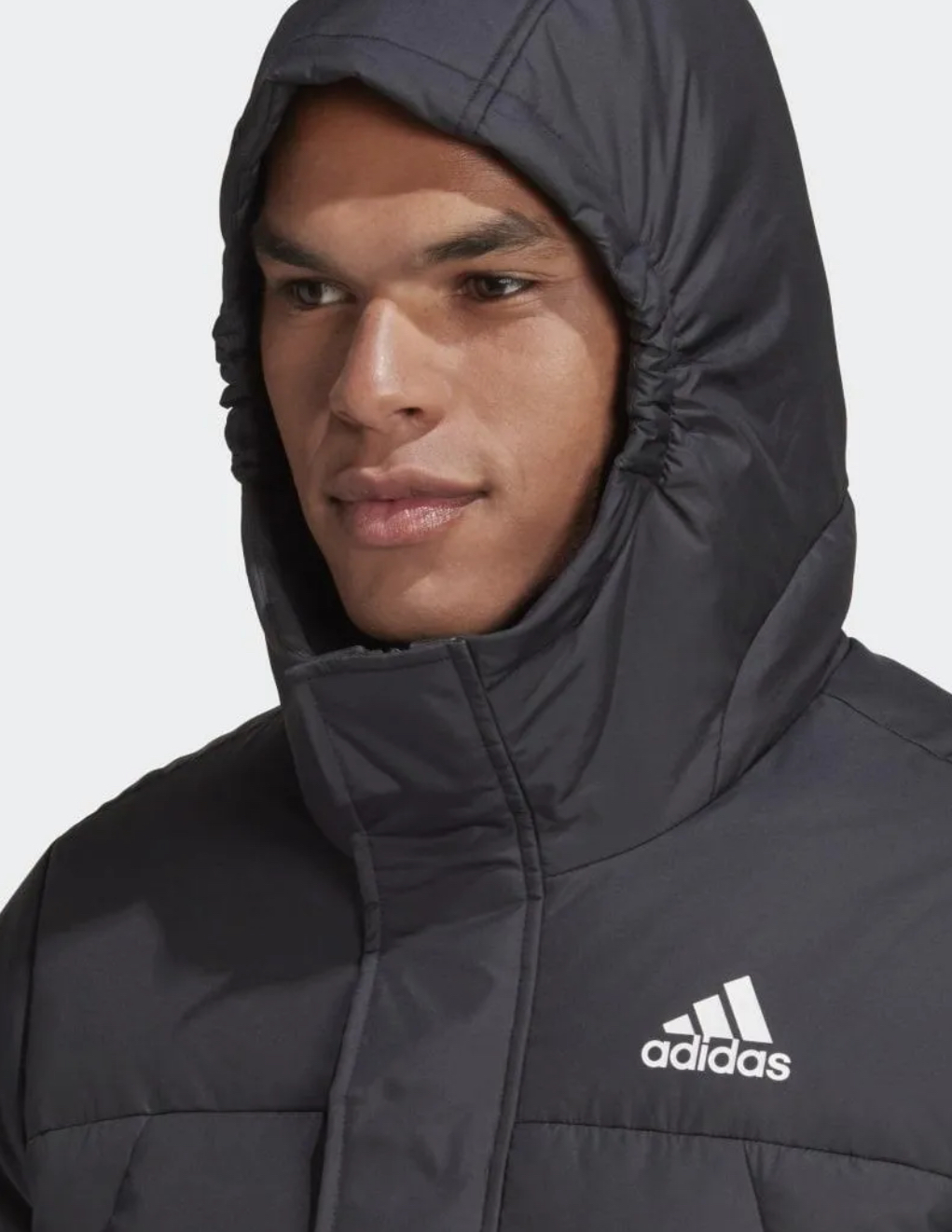 This essential Adidas men’s parka is designed to provide comprehensive warmth in the coldest conditions. The long-line, black silhouette extends past the knee, offering maximum coverage for the street or the sidelines. It is insulated with a blend of natural down and feathers, providing lightweight yet significant thermal retention. While not fully visible, this style typically features the iconic Adidas 3-Stripes detailing on the sleeves or branding. The jacket includes a hood for head and neck warmth, a full two-way zipper for versatile ventilation, and quilted baffling to keep the insulation evenly distributed. Made with a durable shell, often treated with a DWR (Durable Water Repellent) finish, it is built for urban winter exploration and cold-weather sports spectating.