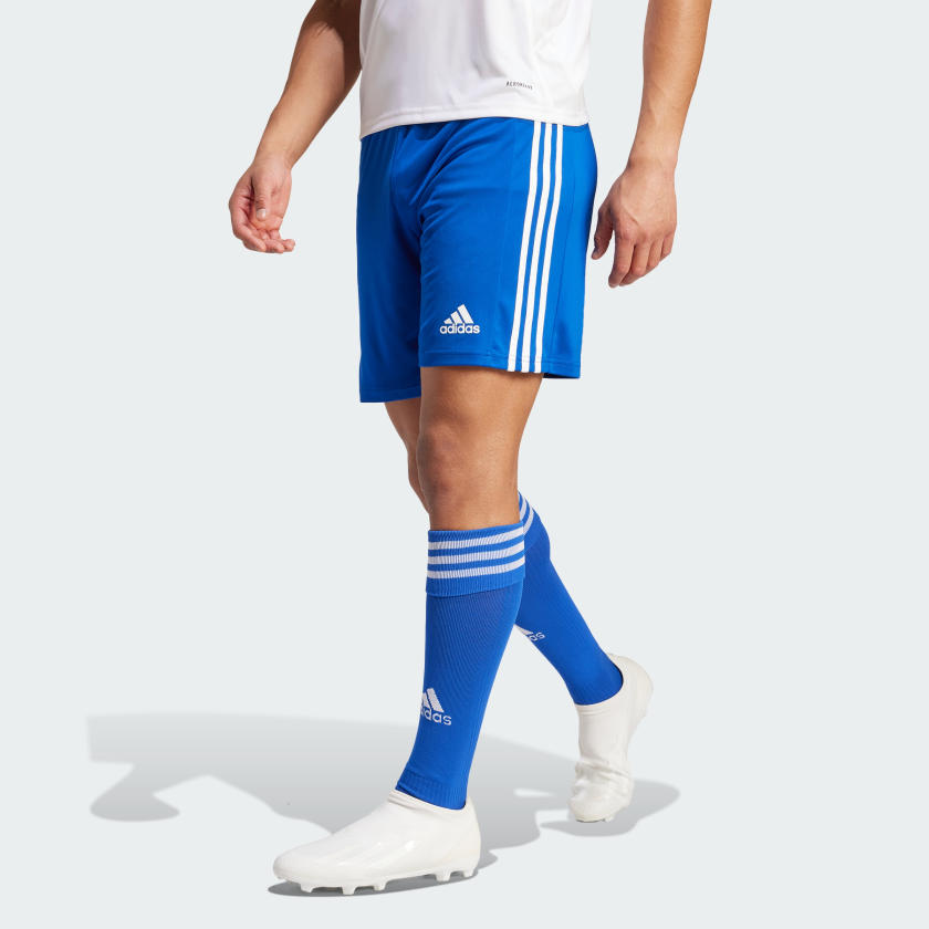 Gear up for your training sessions with the Adidas Squadra 21 Shorts. These royal blue shorts feature the classic Adidas three stripes down the side and a small white Adidas logo on the leg. Made with lightweight, breathable fabric, they are designed to keep you comfortable during practice. An elastic waistband with a drawcord provides an adjustable fit.