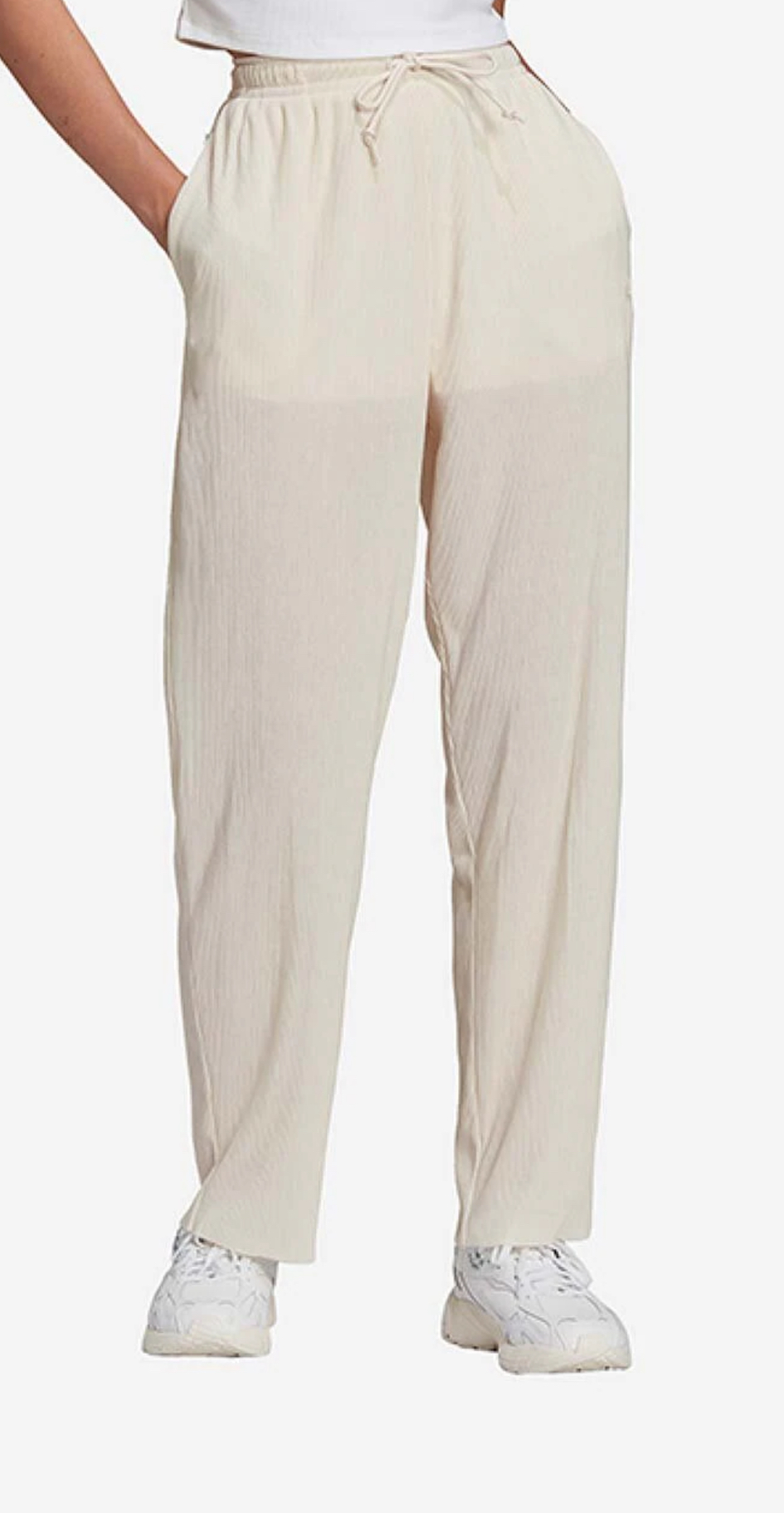 Elevate your loungewear with the adidas Originals Adicolor Plisse Pants, a perfect fusion of high-fashion texture and athletic comfort. These trousers are crafted from a lightweight, stretchy recycled polyester blend featuring a signature “plisse” finish—a tightly pleated, crinkled fabric that provides a sophisticated, flowing drape. Designed with a relaxed, wide-leg silhouette, they offer unrestricted movement while maintaining a polished look suitable for both casual outings and stylish recovery days.