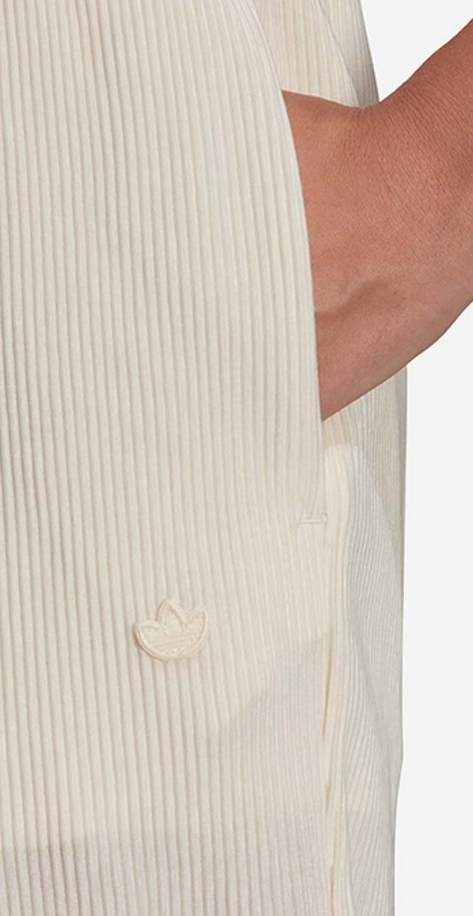 The design features a comfortable elasticated waistband with an internal drawcord for a personalized fit. Practical elements include two side-seam pockets for essentials and a subtle, tonal Trefoil logo appliqué on the thigh, staying true to the iconic Adicolor heritage. As part of adidas’s commitment to sustainability, these pants are made with at least 60% recycled materials.