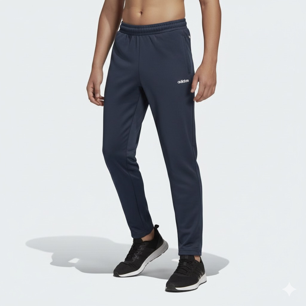 These navy Adidas Essentials 3-Stripes Jogger Pants offer classic comfort and style. They feature an elastic waistband with a drawcord for an adjustable fit, and the iconic Adidas wordmark logo is printed in white on the upper left thigh. These versatile joggers are perfect for casual wear, lounging, or light athletic activities.