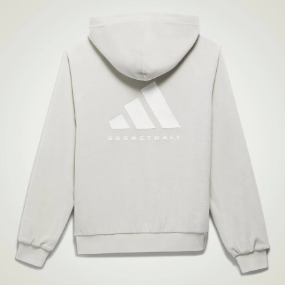 The back features a bold, oversized adidas 3-Bar logo and “BASKETBALL” typography in a clean, tonal print. With its spacious hood and ribbed cuffs, this hoodie provides a secure, cozy fit that prioritizes movement and effortless cool.