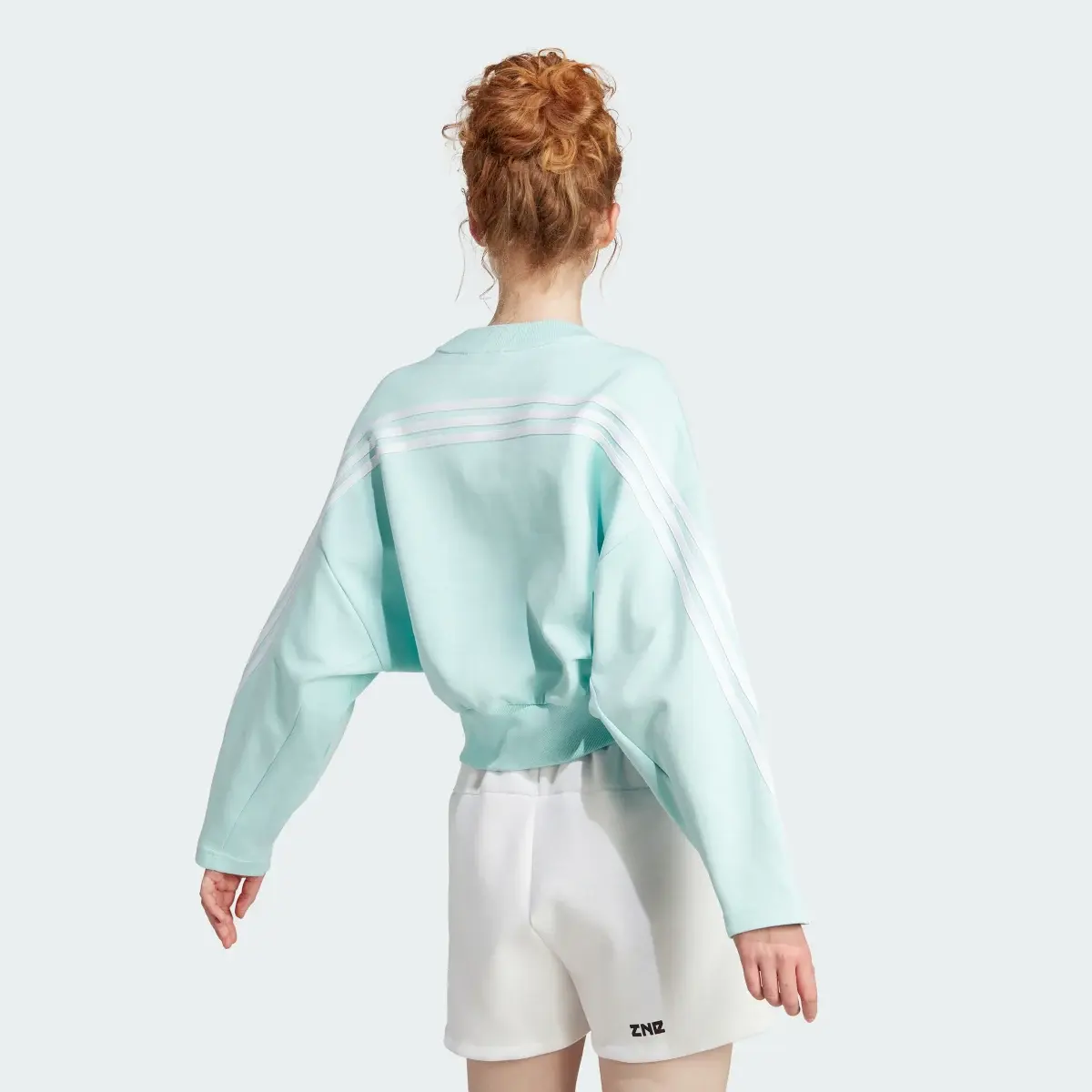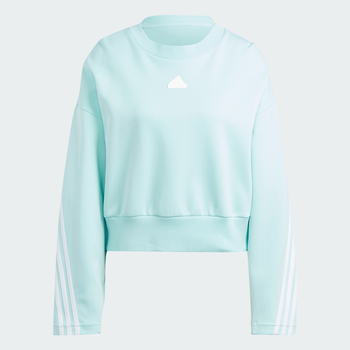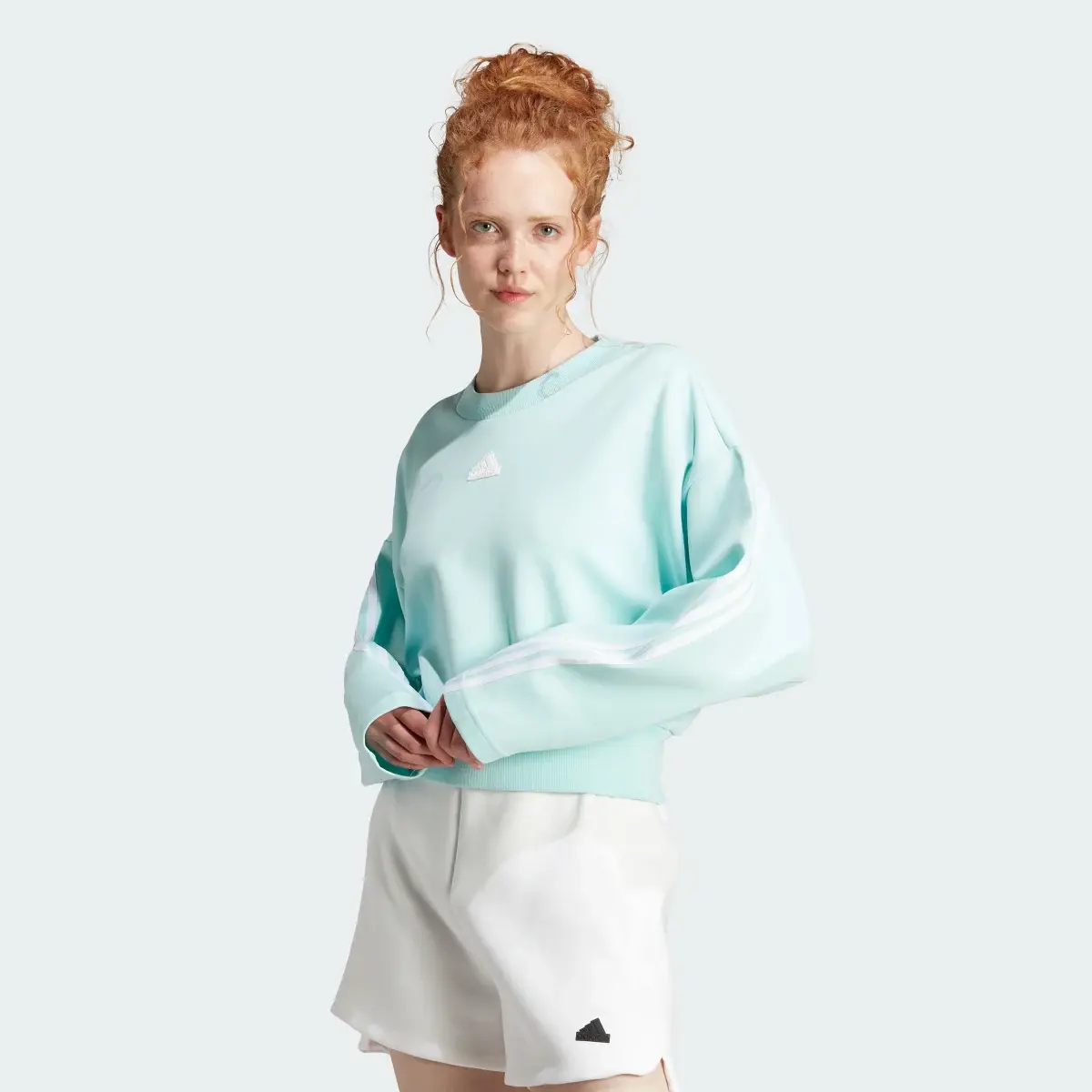 Stay ahead of the style curve while embracing total comfort. This adidas crew sweatshirt offers a fresh take on heritage design, featuring the iconic 3-Stripes wrapping boldly from the back to the front of the sleeves. The soothing mint green hue and modern, loose fit make it an essential layering piece for post-workout cool-downs or casual weekend outings. Crafted from soft, high-quality fabric with a ribbed crewneck and hem, it provides a structured yet relaxed silhouette that pairs perfectly with high-waisted shorts or leggings.
