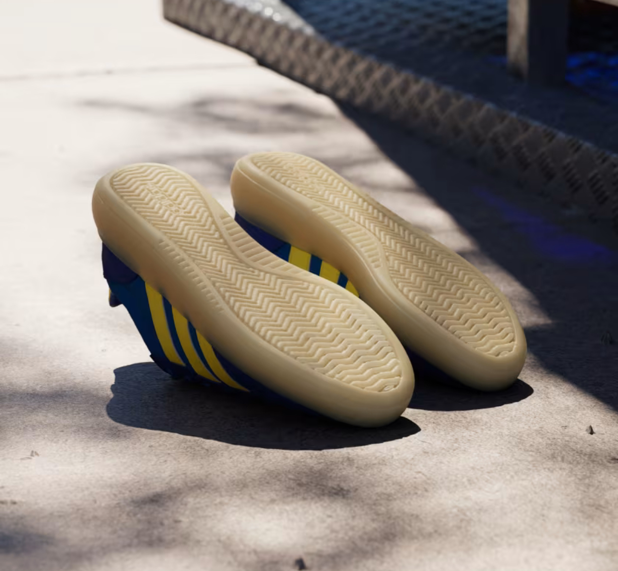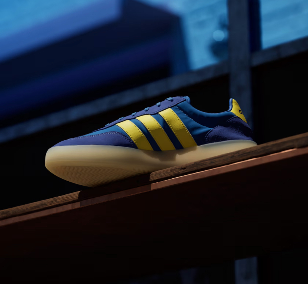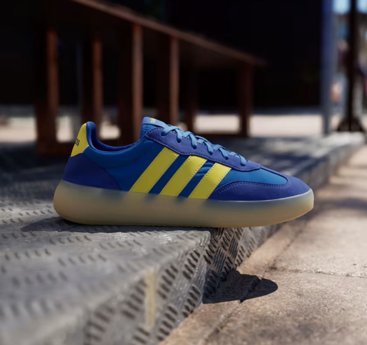 The adidas Barreda Decode is a sport-inspired lifestyle sneaker that offers a fresh, modern spin on the classic T-toe silhouette. This specific colorway features a vibrant blue upper constructed from a premium blend of suede and nylon, providing both durability and a lightweight, breathable feel. Bold yellow leather 3-Stripes and a matching heel tab provide a high-contrast look rooted in heritage terrace style.