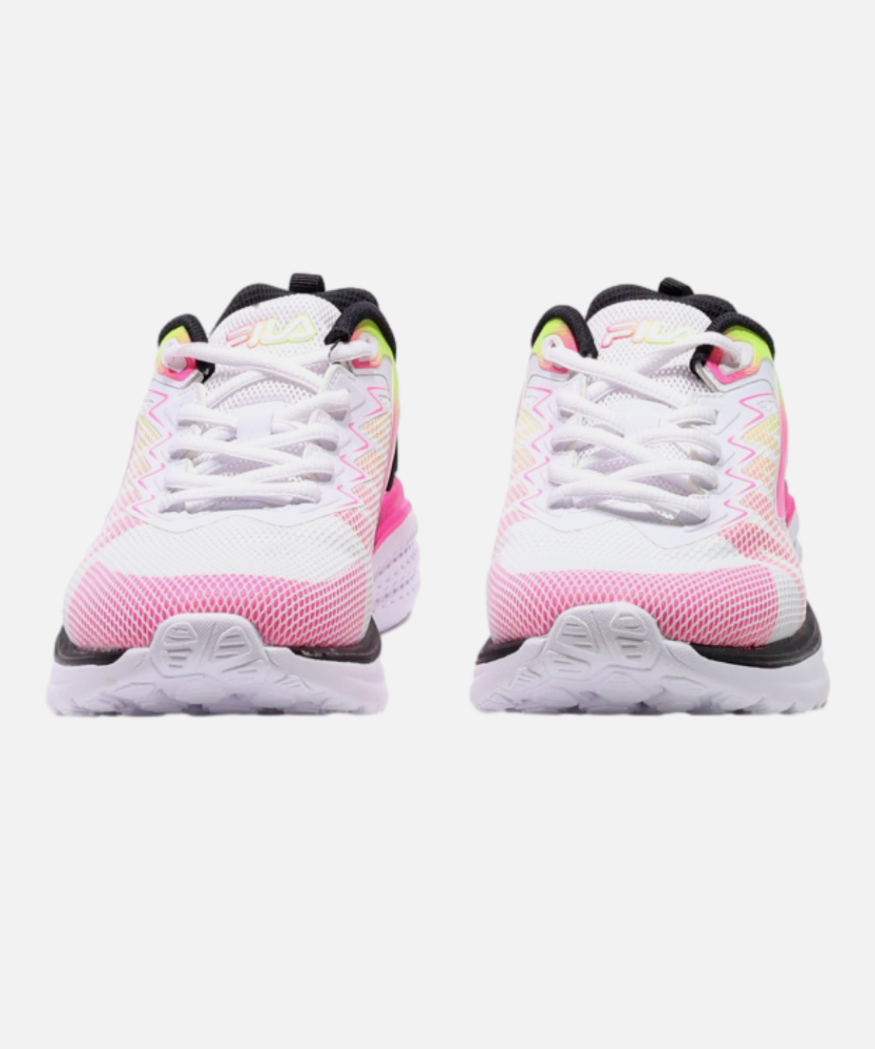 Hit your stride in vibrant style with these Fila Women’s Running Shoes. Designed for comfort and performance, these eye-catching sneakers feature a breathable white mesh upper accented with bold pink and neon yellow detailing, creating a dynamic and energetic look. The Fila logo is prominently displayed on the side heel, and the lacing system is integrated for a secure fit. A chunky yet lightweight white midsole provides ample cushioning and support for impact absorption, making them suitable for running, training, or everyday active wear. The durable outsole ensures reliable traction, while the overall design offers both athletic functionality and a striking aesthetic. They come presented with a red Fila branded shoebox.
