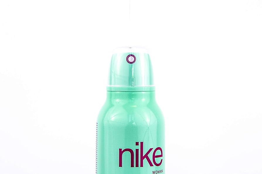 This is a sleek, light green aerosol spray bottle of deodorant for women from the brand Nike. The bottle features “nike” in a purple lowercase font and is labeled “WOMAN” below. The scent is described as “a sparkling day,” and the product is a Deodorant Eau de Toilette. The bottle contains 200ml (6.8 fl.oz.). This deodorant is designed to provide a fresh scent with a light, airy feel.