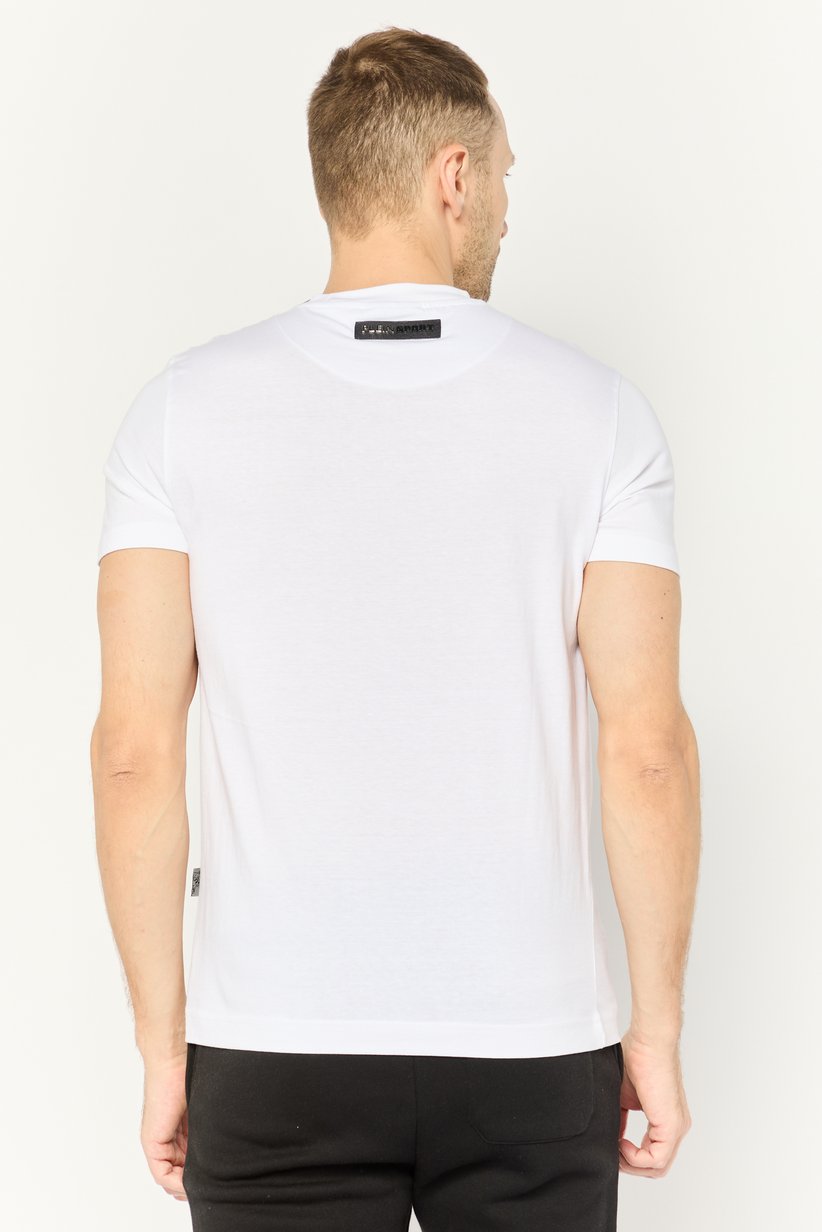 Elevate your athletic and casual wardrobe with the Plein Sport Men’s White Graphic T-Shirt. This short-sleeved tee features a striking graphic print on the front with ‘PLEIN SPORT’ lettering prominently displayed. The design incorporates two stylized tiger-like figures facing each other, with abstract lines and claw marks adding a dynamic edge. Made from comfortable, breathable fabric, this t-shirt is perfect for workouts, everyday wear, or making a bold statement.