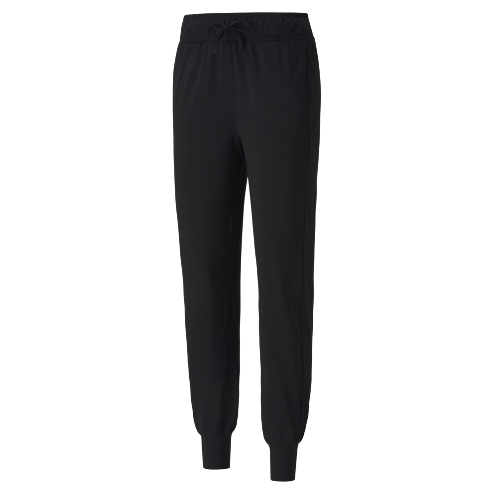 They are designed with an elastic waistband and inner drawcord for a secure, customized fit, along with cuffed ankles for a sleek, modern jogger look. A subtle PUMA Cat Logo is located near the hip for a touch of athletic style. These versatile black joggers are an essential piece for both your workout and loungewear wardrobe.