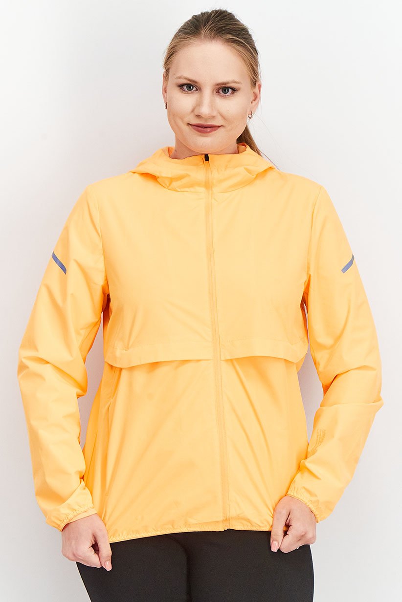 The bright orange fabric ensures high-visibility and is complemented by sleek reflective accents on the sleeves for enhanced safety in low-light or early-morning conditions. It features a practical hood and a clean, full-zip design for quick and easy layering. The unlined, breathable construction prevents overheating, making it the perfect technical shell for varying weather conditions during spring, summer, and fall training.