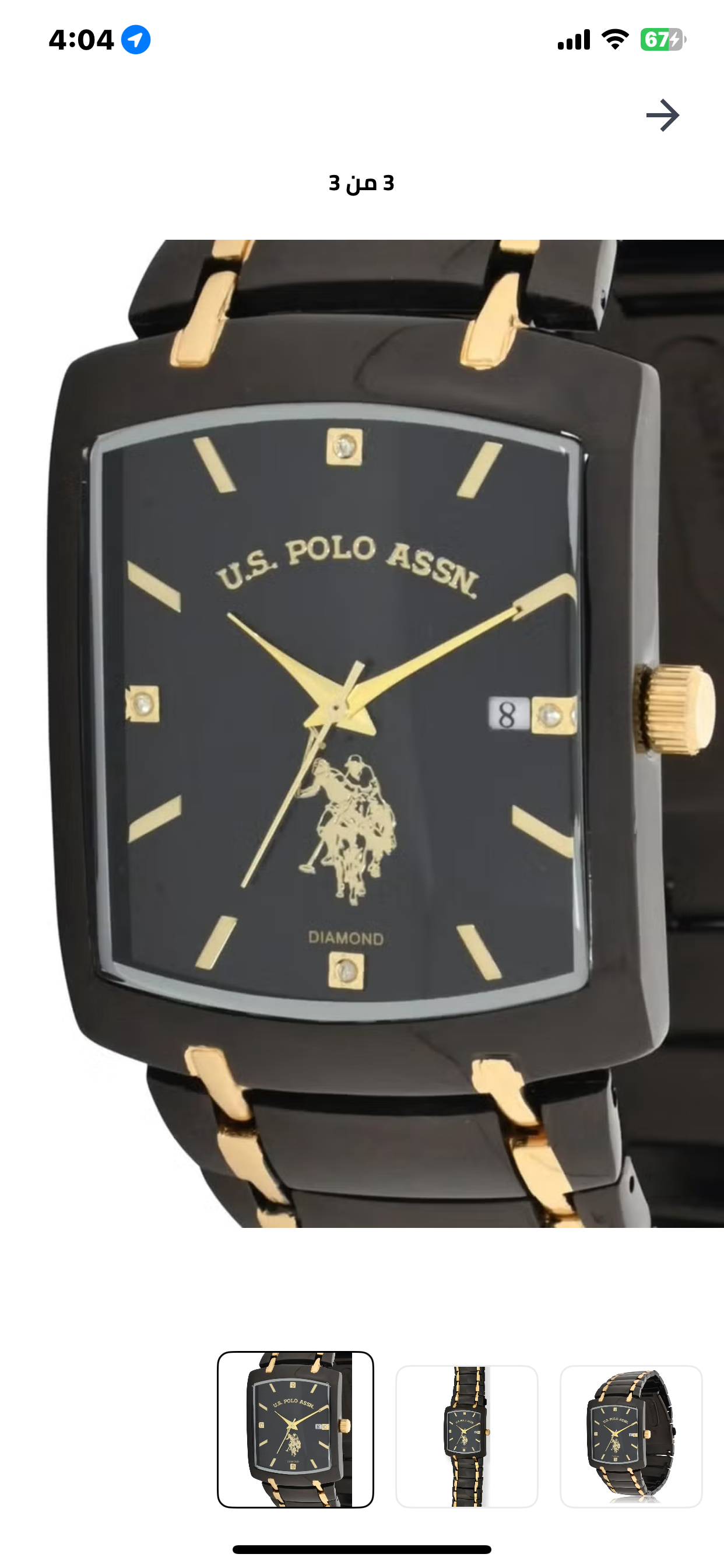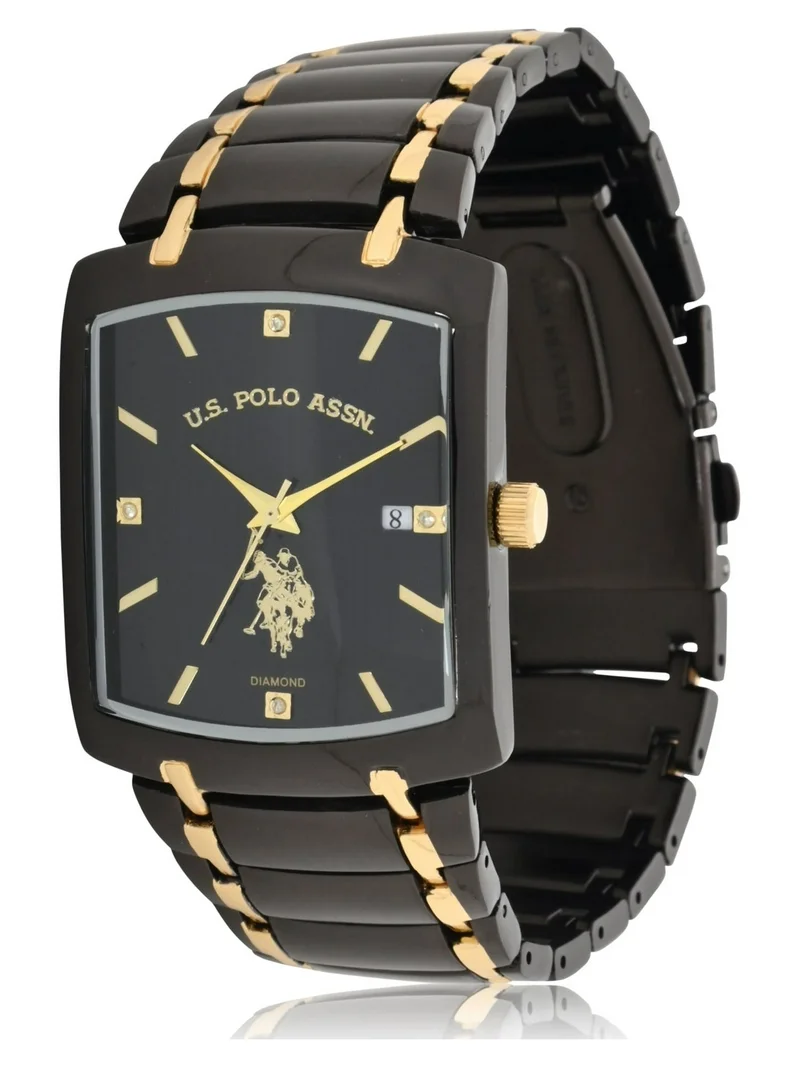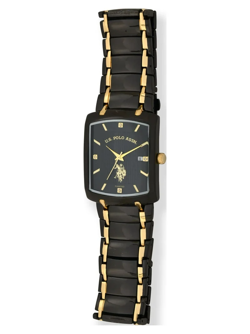 U.S. Polo Assn. Black and Gold-Tone Square Diamond Accent Men’s Watch-U.S. POLO ASSN USC80661
