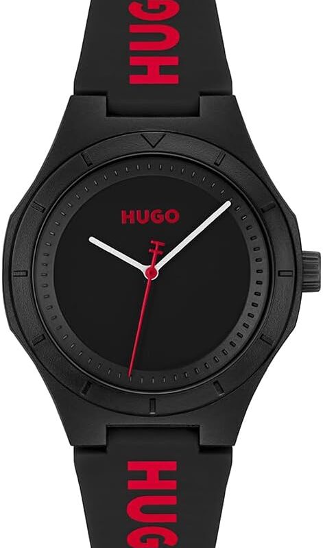 HUGO BOSS Men's Black Silicone Strap Watch with Red Logo Detail-HUGO 1530343