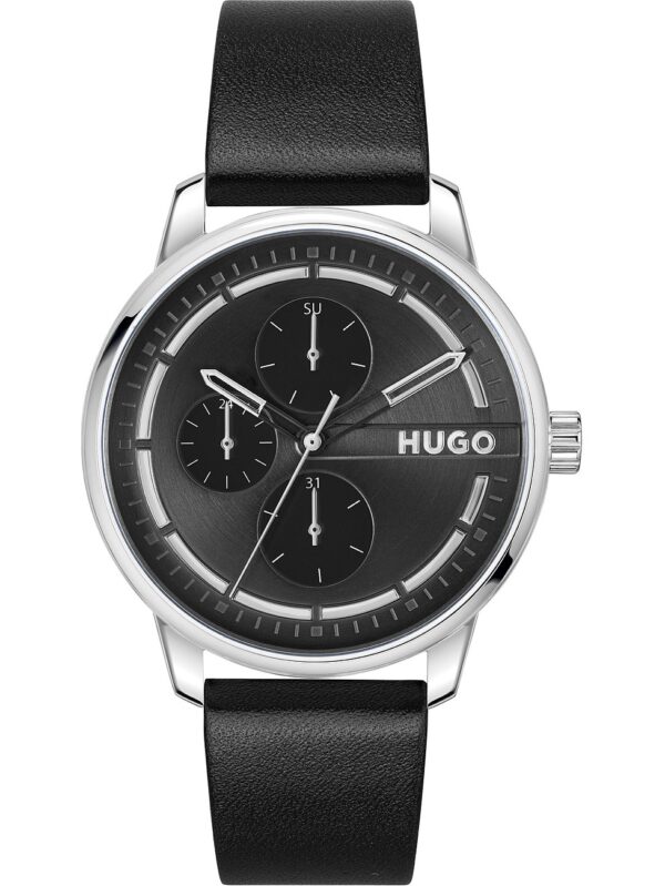 HUGO by Hugo Boss Men's Leap Quartz Multi-Function Watch - Sophisticated Black Dial with Leather Strap-HUGO 1530366