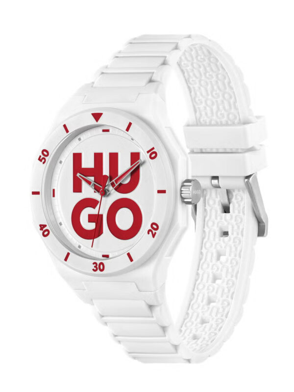 HUGO by Hugo Boss Men's #GO Quartz White Silicone Strap Watch - Bold Red Logo Sport Timepiece-Hugo 1530329