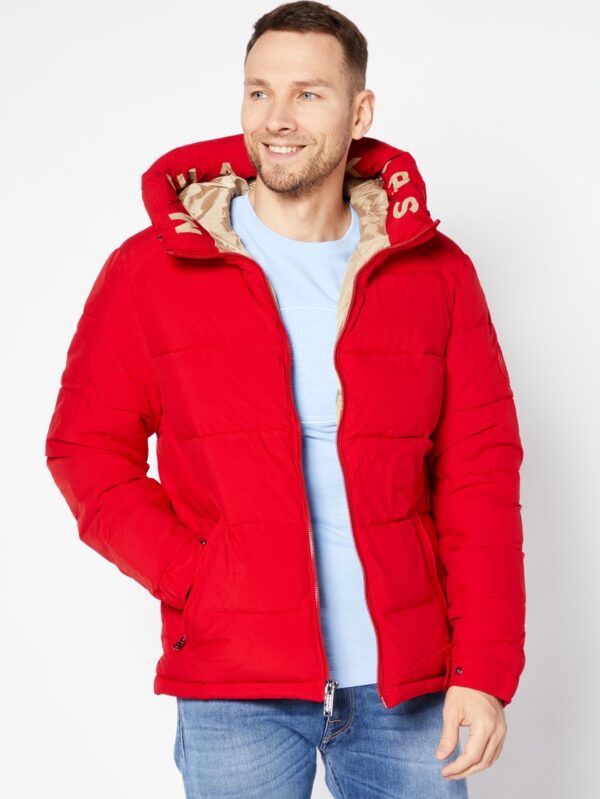 Michael Kors Men's Quilted Puffer Jacket – Vibrant Red with Logo Hood Lining-Michel Korse M69113